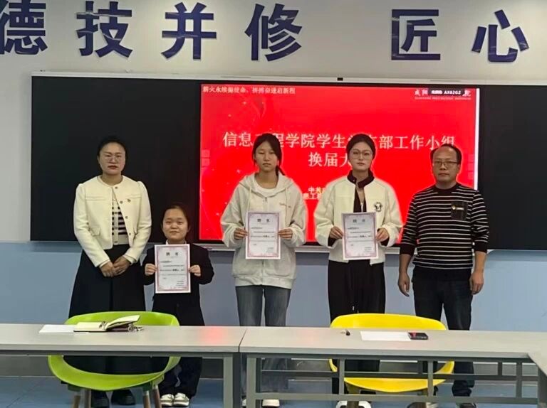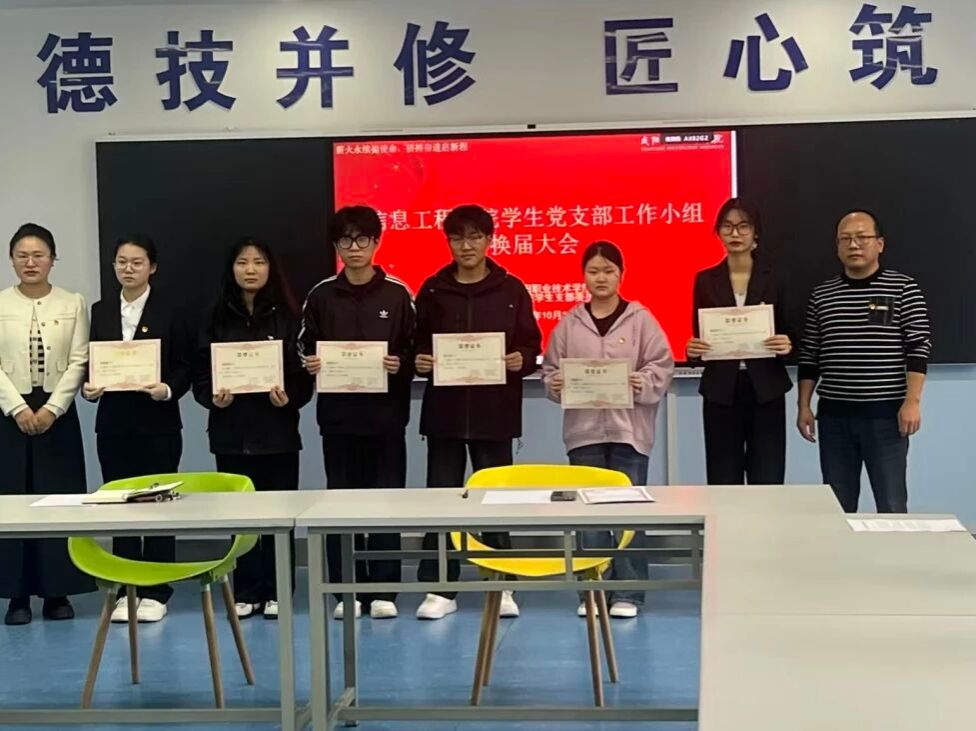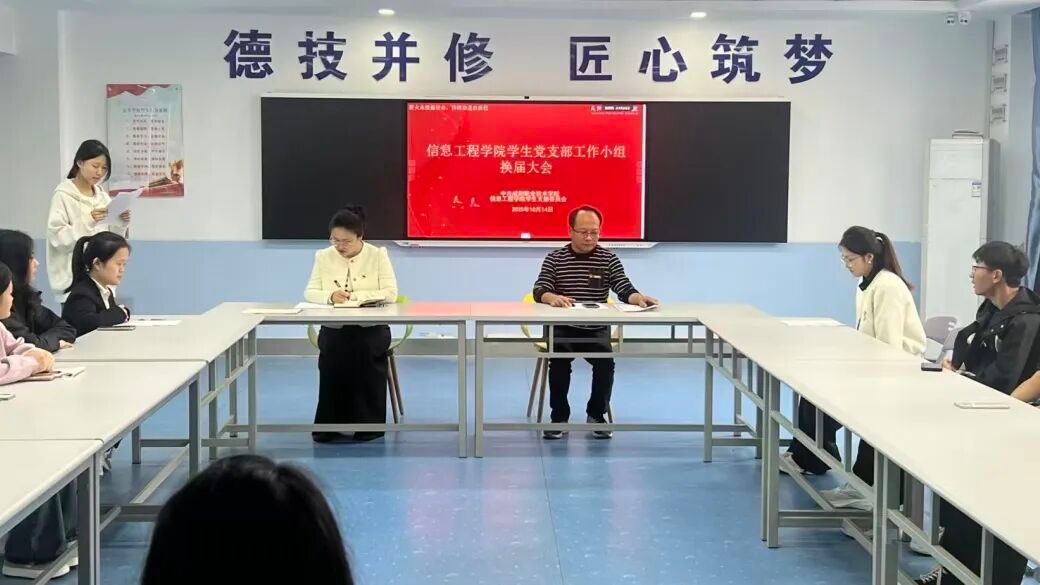青年如初春,如朝日,如利刃之新发于硎。为推动信息工程学院学生党支部工作小组持续深化,2025年10月14日14:30,信息工程学院学生党支部工作小组在5号教学楼314教室举办换届活动。参会人员有信息工程学院学生党支部书记李圣荣、组宣传委员邵秀秀及党建小组全体成员。